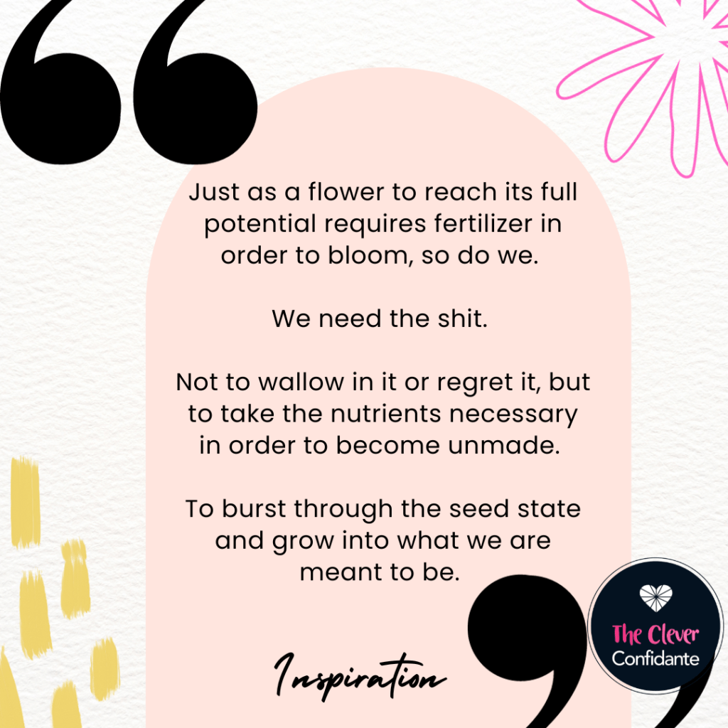 So often without the shit, we wouldn’t push through or past our comfort zones in order to see our full potential and beauty.
