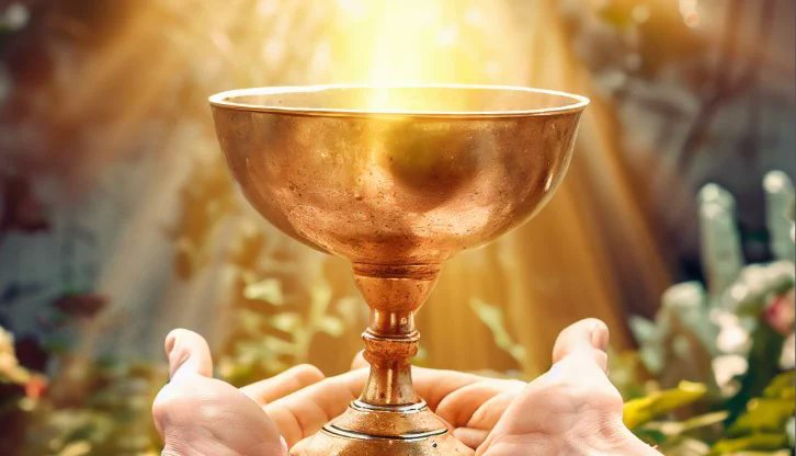The Holy Grail, seen as a cosmic stone fallen from the heavens, a source of both power and life. It heals, grants wishes, and reveals spiritual truths. Imagine it as a source of goodness, accessible only of one’s heart is in the right place.