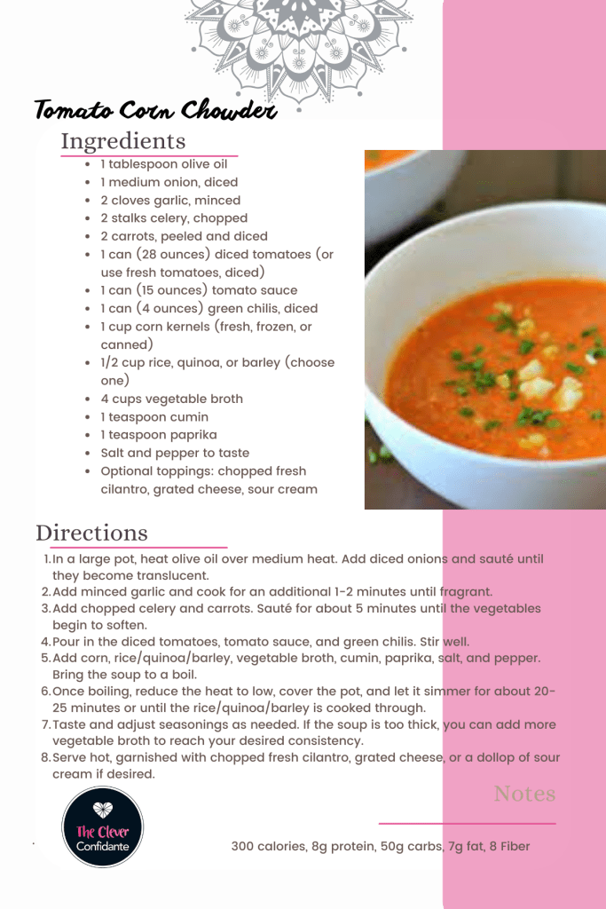 While I can’t vouch for the taste just yet, this Tomato and Corn Chowder showcases the beauty of improvisational cooking. With a bit of ingenuity and a well-stocked pantry, you can turn unexpected weekends into opportunities for delicious, healthy meals. Feel free to get creative, add your favorite beans or protein, and turn your unplanned culinary adventures into memorable dining experiences!