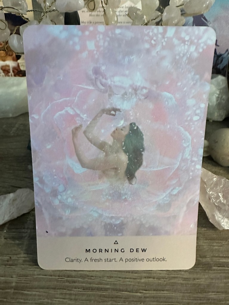 As the Sacred Rose journey continues over the remaining 29 days, the MORNING DEW card encourages us to embrace each day as a fresh start, it reminds us to approach the unfolding journey with clarity and optimism. Just as the morning dew signifies renewal, let each day be an opportunity for positive shifts and healing perspectives. Trust in the potency of the journey, allowing the rose’s unfolding petals to reveal the beauty and potential that lies within.