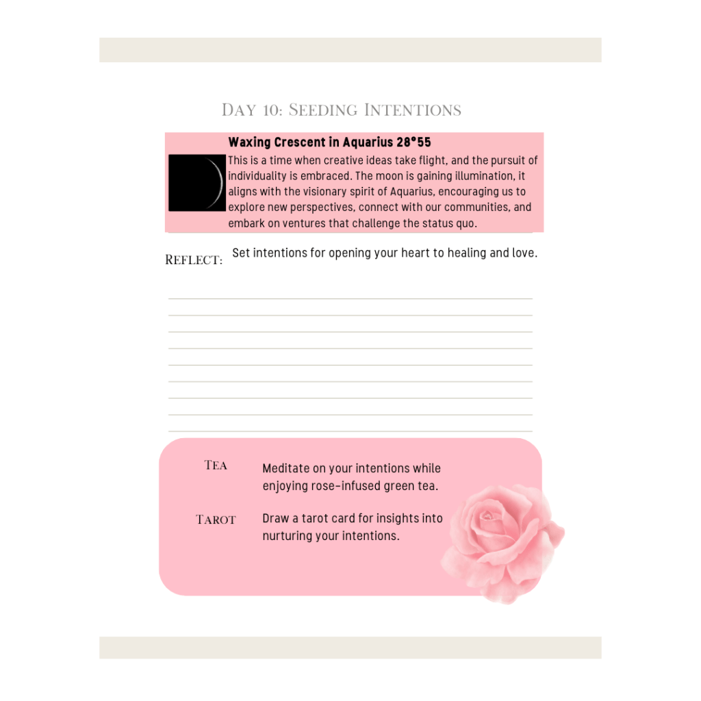 As the moon gains illumination post-New Moon, let us seize this perfect moment to SEED INTENTIONS. Today, I invite you to set a specific intention for the 29-day journey of the rose –