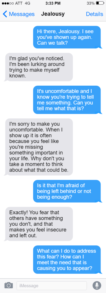 Like our conversation with fear, let’s dialogue with our jealousy. Rather than pushing it aside or labeling it as a “bad” emotion, let’s explore why it’s present and what it’s trying to teach us.