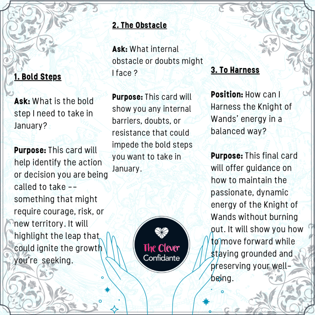 This three-card spread is designed to help you harness the adventurous and transformative energy of The Fool for February. It focuses on understanding the path ahead, overcoming challenges, and embracing new opportunities.