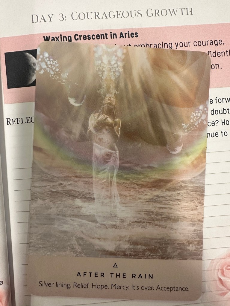 Hesitation often comes from a place of fear—fear of the unknown, fear of failure, fear of stepping outside your comfort zone. But the After the Rain card reminds you that you’ve already been through the hardest part. You’ve faced the storm, endured the trials, and come out the other side. Now, the skies have cleared, and what’s ahead is filled with smooth seas and warm, nourishing light. The fear you’ve been holding onto no longer serves you. It’s time to release it, to trust in the journey, and to boldly move forward into this new chapter.