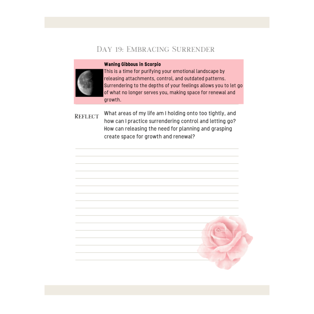 Often, we cling to control out of fear—whether of the unknown or losing what we value. However, holding on too tightly blocks the flow of life and prevents the very growth we seek. Scorpio teaches us that surrendering to our emotions and releasing our need to plan every detail invites new possibilities and aligns us with our true path.