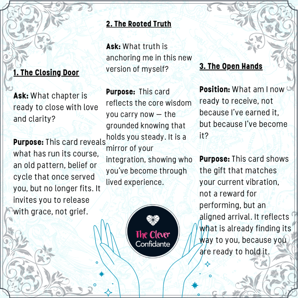Rooted in the energy of integration, wholeness, and The World, this spread invites you to explore what has come full circle and what is now ready to begin.
