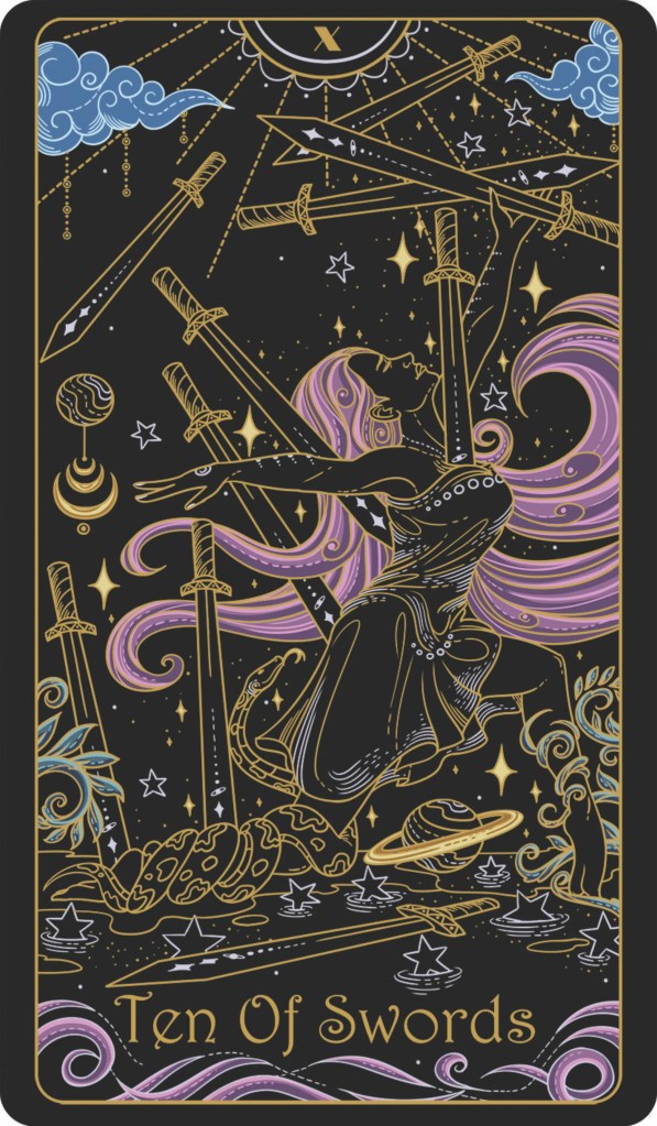 It can feel like a warning, but really it’s a release. The Ten of Swords says: enough. Enough carrying what was never yours to hold. Enough repeating the same patterns. Enough mistaking pain for loyalty. Endings don’t come to punish, they come to free.
