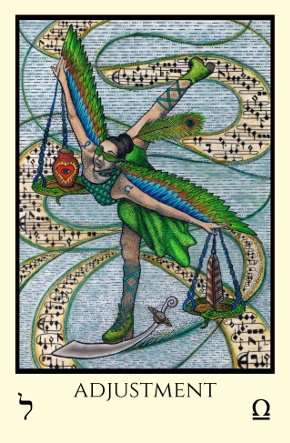 My first card was the Adjustment—the card of balance. In the Tabula Mandi Tarot, this is a card of constant motion and micro-adjustments. Calibration.